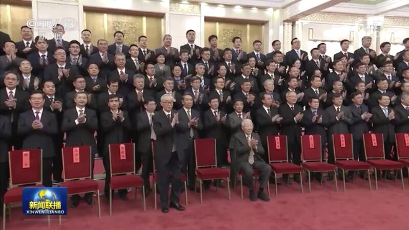 人民大會堂北大廳氣氛喜慶熱烈。上午10時許,習(xí)近平等黨和國家領(lǐng)導(dǎo)同志步入會場,向參研參試人員代表揮手致意,全場響起經(jīng)久不息的掌聲。習(xí)近平同孫家棟、欒恩杰等親切交流,并同大家合影留念。