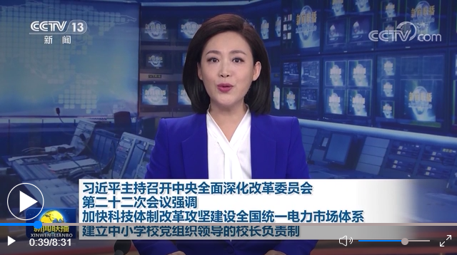 加快科技體制改革攻堅(jiān)建設(shè)全國(guó)統(tǒng)一電力市場(chǎng)體系 建立中小學(xué)校黨組織領(lǐng)導(dǎo)的校長(zhǎng)負(fù)責(zé)制