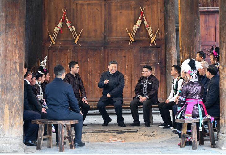2025年3月17日下午,習近平總書記在貴州黔東南州黎平縣肇興侗寨考察時,在信團鼓樓同村干部和村民代表圍坐在火塘邊,共話鄉(xiāng)村全面振興。