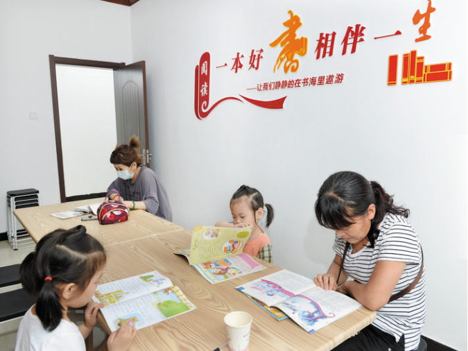 我市在創(chuàng)建全國(guó)文明城市工作中,城區(qū)辦事處綜合文化站標(biāo)準(zhǔn)化規(guī)范化工作得到進(jìn)一步提升。圖為社區(qū)群眾正在新建路辦事處黨群服務(wù)中心閱覽室進(jìn)行親子閱讀。本報(bào)記者 宮愛(ài)文 攝