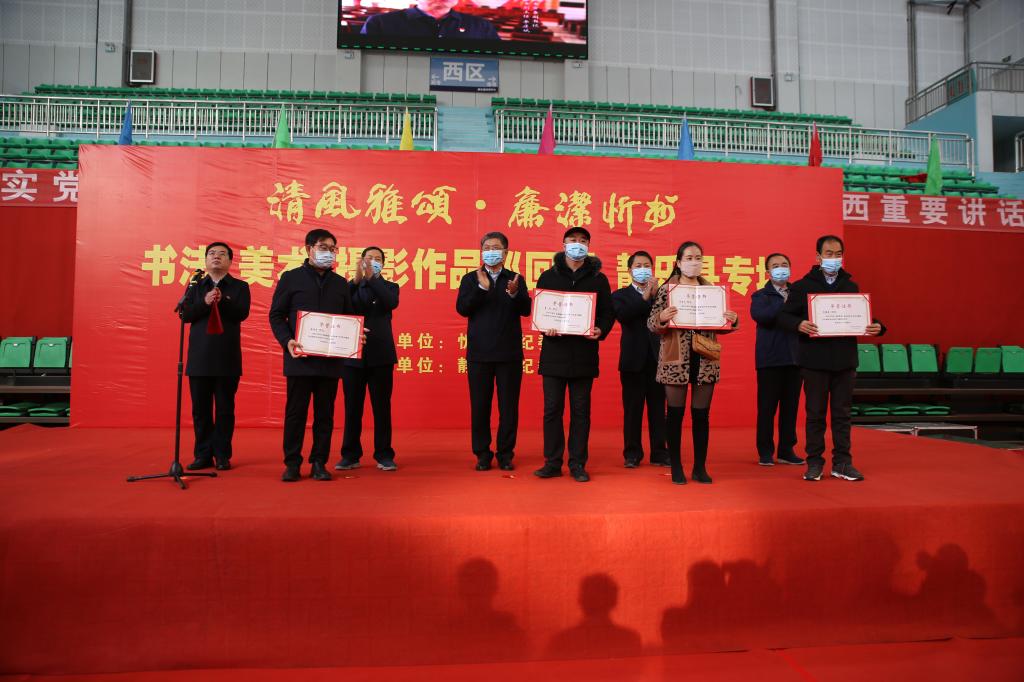 2020年12月2日,“清風(fēng)雅頌·廉潔忻州”書法美術(shù)攝影作品展靜樂站巡展開展儀式在靜樂縣體育中心舉行,縣四大班子領(lǐng)導(dǎo)出席開展儀式,縣委常委、縣紀(jì)委書記、監(jiān)委主任方筆計(jì)主持。