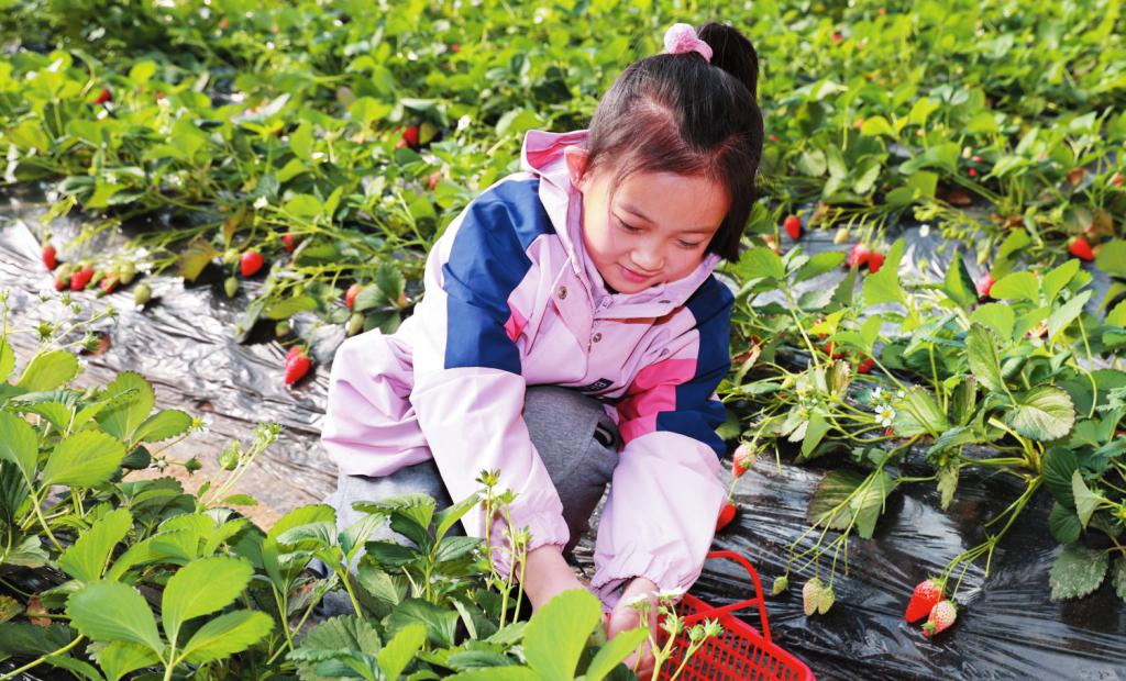 1月18日,小朋友在忻府區(qū)欣欣生態(tài)園果蔬大棚采摘草莓。近年來,忻府區(qū)不斷探索市場需求,調(diào)整種植結構,因地制宜發(fā)展大棚種植,既豐富了群眾的“菜籃子”“果盤子”,也拓寬了農(nóng)民的增收渠道。 (張存良 攝)