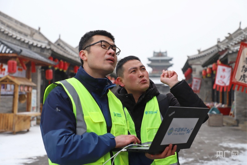 離開商鋪,郭勇和同事又來到古縣城十字街的中心點(diǎn),這里是古縣城人流最為密集的地方,也是游客用網(wǎng)需求最大的地方?!霸谥行奈恢?,我們放置了2個5G基站,同時在城墻外放置了6個,內(nèi)城墻上放置了7個,還在一些網(wǎng)絡(luò)覆蓋較弱的小街道放置了‘微站’設(shè)備進(jìn)行擴(kuò)容。春節(jié)期間,我們還會組織應(yīng)急保障隊進(jìn)行通信保障,通過這樣的基站布局最大限度保障游客的通信順暢?!闭f話間,郭勇和同事一人操作電腦,一人操作手機(jī)已經(jīng)完成了此處的信號測試。