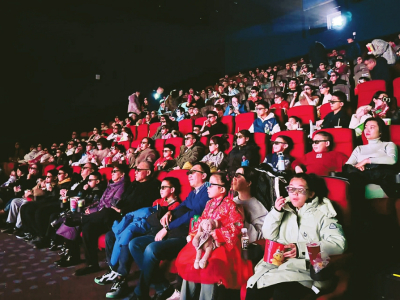 圖③2月13日,觀眾在太原龍湖萬達(dá)影城觀看春節(jié)檔影片。