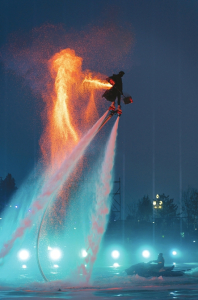 ⑤1月31日晚,運城鹽湖景區(qū),民間藝人表演飛天火壺。