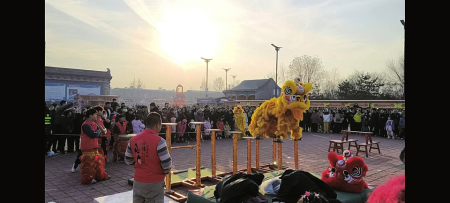 春節(jié)期間,永濟(jì)市虞鄉(xiāng)鎮(zhèn)土樂村村民自發(fā)組織的民間藝術(shù)團(tuán),向省內(nèi)外游客表演省級非遺項(xiàng)目——永濟(jì)空中飛獅。