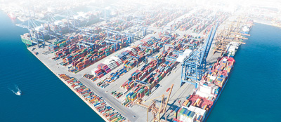 由中國遠洋海運集團運營的希臘比雷埃夫斯港俯瞰圖。新華社記者 吳 魯攝