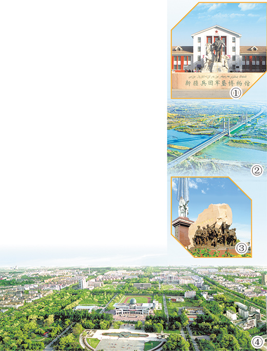 石河子市被譽(yù)為“共和國(guó)軍墾第一城”。第一代老軍墾陸振歐回憶當(dāng)時(shí)的情景,仍記憶猶新:“那時(shí)只有車馬店、賣馕的幾戶人家,除了北面蘆葦?shù)?,到處是荒灘戈壁?!钡谝淮鴪F(tuán)人喝鹽堿水、睡“地窩子”,人拉肩扛、挖渠引水、改造葦湖、開(kāi)墾荒地,在荒無(wú)人煙的大漠之邊打造了一座現(xiàn)代化新城。如今,石河子市碧水繞城、綠意盎然、鳥(niǎo)語(yǔ)花香,綠蔭掩映座座現(xiàn)代化廠房。石河子崛起為新疆重要工業(yè)基地,享有“戈壁明珠”的美名?!笆幼訌囊粡埌准埰鸺遥l(fā)展到現(xiàn)在,靠的就是兵團(tuán)人艱苦奮斗、開(kāi)拓創(chuàng)新的精神。”陸振歐感慨地說(shuō)。