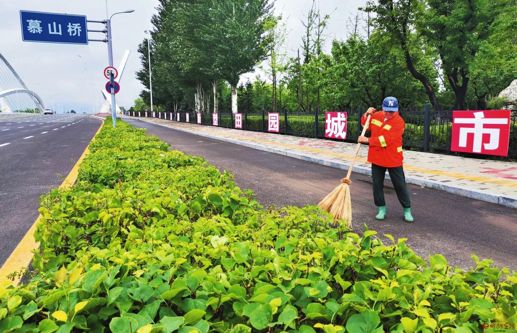 7月12日,云中河風(fēng)景區(qū)保潔員正在清掃路面。昨日的連續(xù)強(qiáng)降雨天氣,使個別路段除了落葉,新增泥濘。環(huán)衛(wèi)工人一早清掃,保景區(qū)環(huán)境整潔。(宮清華 攝)