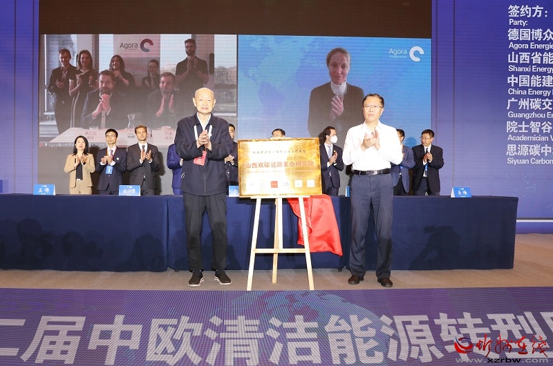 山西雙碳能源革命研究院由博眾能源轉(zhuǎn)型論壇、山西省能源研究會(huì)、中國(guó)能源建設(shè)集團(tuán)有限公司、廣州碳排放權(quán)交易所、院士智谷、思源碳中和科技(山西)有限公司六方協(xié)商,同意達(dá)成戰(zhàn)略合作伙伴關(guān)系,聯(lián)合支持山西雙碳能源革命研究院建設(shè),并以此為合作平臺(tái),合力推動(dòng)碳達(dá)峰碳中和、能源革命和產(chǎn)業(yè)科技創(chuàng)新發(fā)展。六方本著優(yōu)勢(shì)互補(bǔ)、互惠互利、深化合作、共同發(fā)展的原則,在戰(zhàn)略咨詢、科技合作成果轉(zhuǎn)換、人才引進(jìn)、共建科研基地等方面開(kāi)展全方位深層次長(zhǎng)期合作,力爭(zhēng)創(chuàng)建一流科學(xué)研究機(jī)構(gòu)和組織。現(xiàn)場(chǎng)六方共同簽約合作備忘錄,名譽(yù)院長(zhǎng)宋振騏和省發(fā)改委二級(jí)巡視員霍喜福共同揭牌。