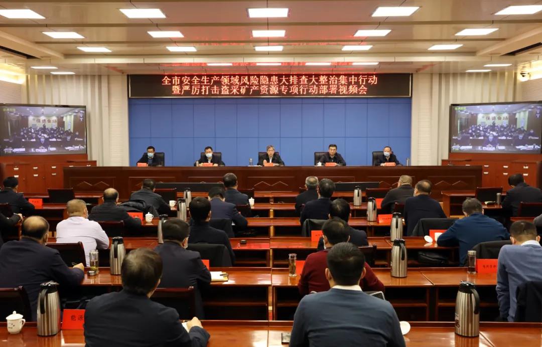 12月21日,全市安全生產(chǎn)領(lǐng)域風(fēng)險(xiǎn)隱患大排查大整治集中行動(dòng)暨嚴(yán)厲打擊盜采礦產(chǎn)資源專項(xiàng)行動(dòng)部署會(huì)召開(kāi),貫徹全省會(huì)議精神,安排我市當(dāng)前工作。市委書記朱曉東主持會(huì)議并作重要講話,強(qiáng)調(diào)歲末年關(guān)各項(xiàng)工作千頭萬(wàn)緒,安全生產(chǎn)的嚴(yán)峻性、艱巨性、緊迫性尤為突出,各級(jí)各部門務(wù)必高度重視,從嚴(yán)警醒起來(lái),堅(jiān)決杜絕麻痹僥幸心理、松懈情緒,以永遠(yuǎn)在路上的心態(tài),以一切從零開(kāi)始的作為,堅(jiān)持兩手用力,推進(jìn)兩個(gè)行動(dòng),全面落實(shí)好省委省政府和市委市政府部署要求,堅(jiān)決守牢安全生產(chǎn)底線。市委副書記、市政府黨組書記李建國(guó),市委常委、常務(wù)副市長(zhǎng)趙新年,副市長(zhǎng)、市公安局長(zhǎng)袁小波,市政府秘書長(zhǎng)張艮生出席會(huì)議。會(huì)議以視頻方式召開(kāi),各縣(市、區(qū))設(shè)分會(huì)場(chǎng),兼任縣(市、區(qū))職務(wù)的市領(lǐng)導(dǎo)在分會(huì)場(chǎng)出席會(huì)議。市政府安委會(huì)成員單位和相關(guān)重點(diǎn)企業(yè)負(fù)責(zé)人在市主會(huì)場(chǎng)參加會(huì)議。