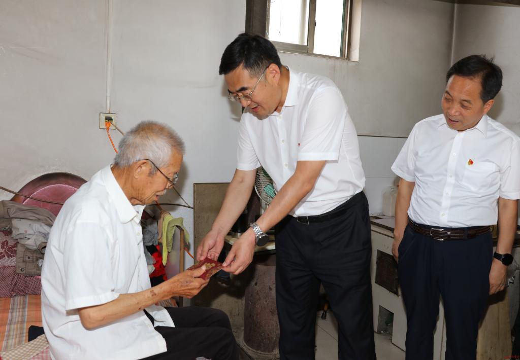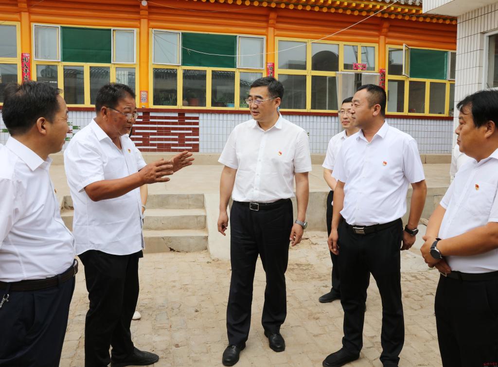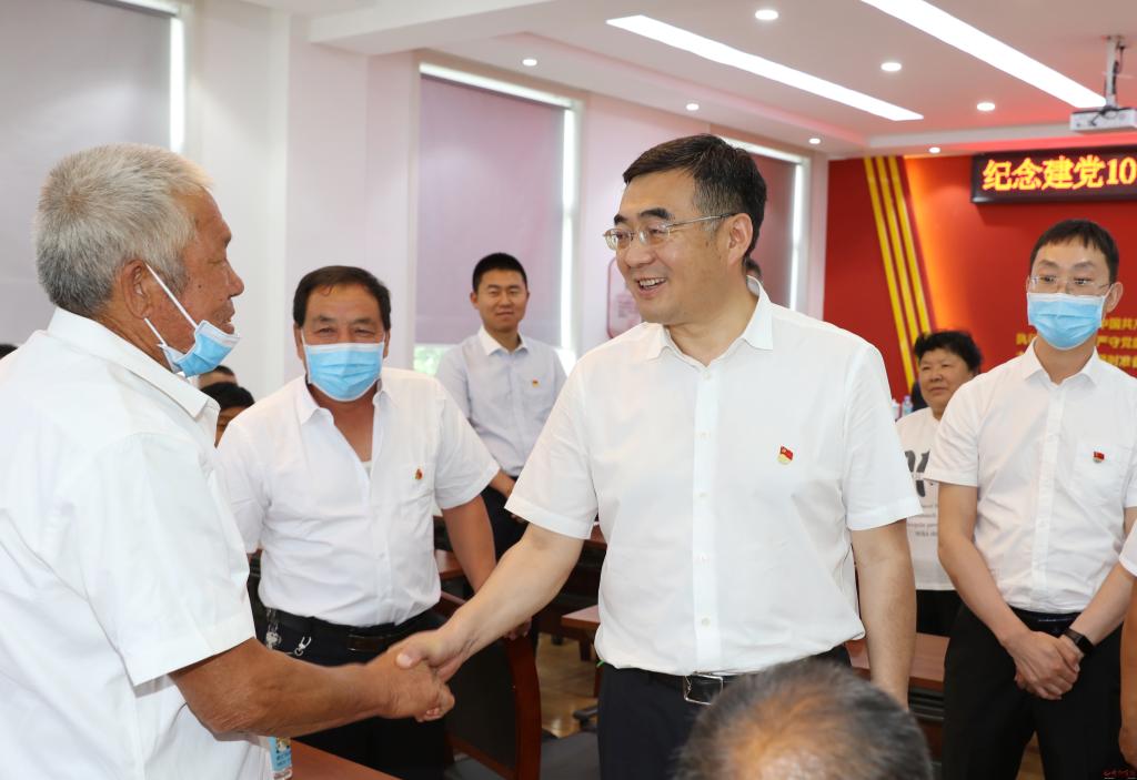 在弓家莊村。范濤 攝 6月30日,市委副書記、市長李建國深入原平市王家莊鄉(xiāng)弓家莊村,走訪慰問宋還順、宋艮貴等困難老黨員,調(diào)研了解鄉(xiāng)村治理情況和村民大棚蔬菜產(chǎn)業(yè)發(fā)展情況,圍繞“鄉(xiāng)村振興”為基層黨員干部講授專題黨課,慶祝建黨101周年。市政府秘書長張艮生和市鄉(xiāng)村振興部門負責人等參加。