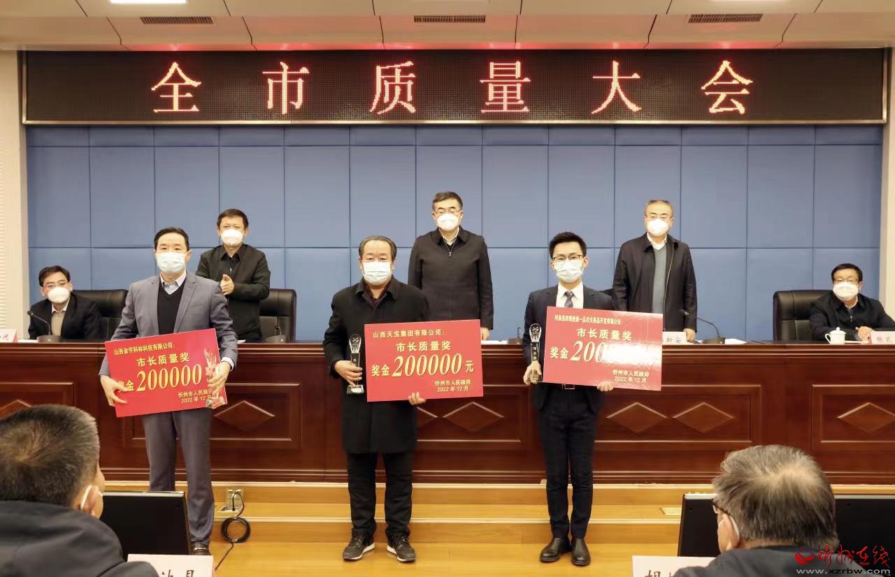 為獲獎(jiǎng)代表頒獎(jiǎng)。范濤 攝 郭新安指出,近年來(lái),“質(zhì)量強(qiáng)省、品牌興晉、標(biāo)準(zhǔn)引領(lǐng)”等全省整體質(zhì)量水平顯著提升,忻州全市質(zhì)量工作也亮點(diǎn)凸顯。當(dāng)前,忻州市和全省其他市一樣,也正處在轉(zhuǎn)型升級(jí)、爬坡過(guò)坎的關(guān)鍵階段,要實(shí)現(xiàn)高質(zhì)量發(fā)展,必須把質(zhì)量強(qiáng)市擺在戰(zhàn)略位置,作為一項(xiàng)基礎(chǔ)性、長(zhǎng)期性工作來(lái)抓,必須把高質(zhì)量發(fā)展要求固化為質(zhì)量意識(shí)、內(nèi)化為質(zhì)量自覺(jué)、轉(zhuǎn)化為質(zhì)量行動(dòng),以更大決心、更大力度、更新舉措扎實(shí)做好各項(xiàng)質(zhì)量工作。要在質(zhì)量強(qiáng)市頂層規(guī)劃設(shè)計(jì)上大膽探索,在深化質(zhì)量提升行動(dòng)上大膽探索,在夯實(shí)質(zhì)量基礎(chǔ)設(shè)施上大膽探索,在品牌建設(shè)上大膽探索。要大膽創(chuàng)新,勇于破題,既要從大處著眼,又要從小處入手,扎實(shí)推進(jìn)全面質(zhì)量管理,積極推行企業(yè)首席質(zhì)量官制度,為全省質(zhì)量發(fā)展工作創(chuàng)出“忻州經(jīng)驗(yàn)”。 會(huì)上,市工信局、市農(nóng)業(yè)農(nóng)村局、天寶集團(tuán)、四海進(jìn)通一品農(nóng)夫果品公司負(fù)責(zé)人就質(zhì)量提升行動(dòng)實(shí)施情況作了發(fā)言;對(duì)第二屆忻州市市長(zhǎng)質(zhì)量獎(jiǎng)獲獎(jiǎng)組織和個(gè)人進(jìn)行了表彰,獲獎(jiǎng)組織代表宣讀了倡議書(shū)。