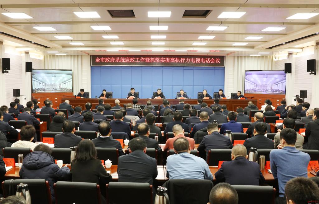 本報訊 (記者任逢春)2月22日,全市政府系統(tǒng)廉政工作暨抓落實提高執(zhí)行力會議召開,深入學(xué)習(xí)貫徹習(xí)近平總書記關(guān)于黨的自我革命的重要思想,全面貫徹黨中央國務(wù)院、省委省政府、省紀(jì)委和市委的系列會議安排,對縱深推進(jìn)政府系統(tǒng)黨風(fēng)廉政建設(shè)和反腐敗斗爭工作進(jìn)行安排部署,號召全市政府系統(tǒng)振奮精神、擔(dān)當(dāng)作為,全面提升重實干、強(qiáng)執(zhí)行、抓落實的實踐成效,不斷開創(chuàng)全市高質(zhì)量發(fā)展、全方位轉(zhuǎn)型和現(xiàn)代化建設(shè)新局面。市委副書記、市長李建國出席會議并講話。市委常委、常務(wù)副市長趙新年主持會議。市委常委、市紀(jì)委書記、市監(jiān)委代主任王建江,副市長史紅波、賈玲香、王建峰、李碩,市政府秘書長張艮生出席。