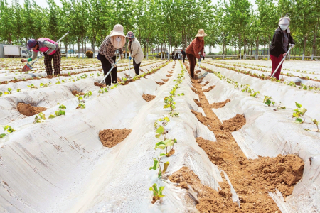 四月十一日,夏縣裴介鎮(zhèn)墻下村農(nóng)田里,農(nóng)民正在對(duì)紅薯秧苗實(shí)施圍土作業(yè)。眼下正是春耕春播時(shí)節(jié),當(dāng)?shù)剞r(nóng)民加緊實(shí)施護(hù)苗管理,確保紅薯增產(chǎn)增收。