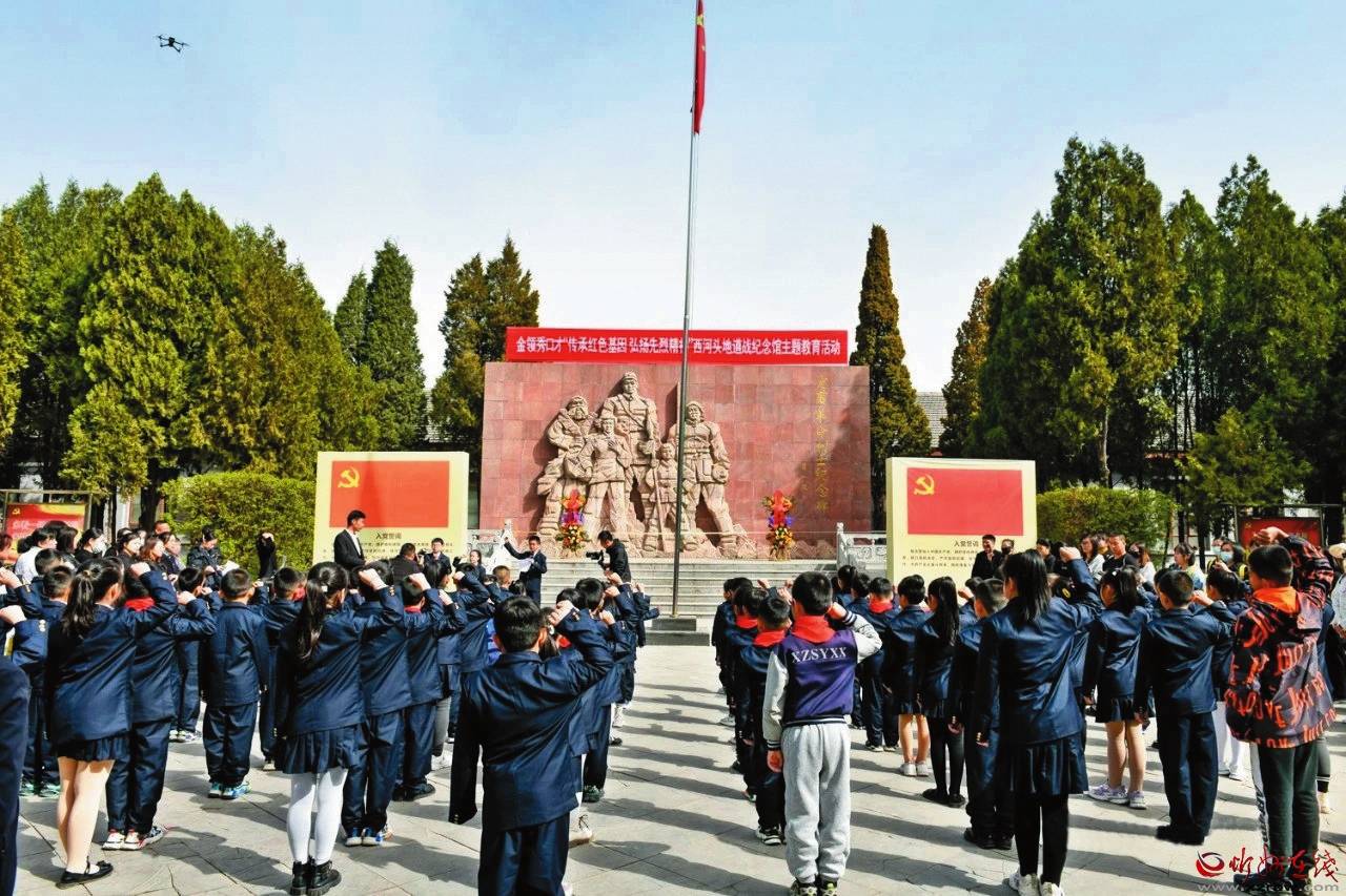 在西河頭地道戰(zhàn)紀(jì)念館英雄紀(jì)念碑前,大家聆聽革命先烈故事,向烈士紀(jì)念碑敬獻(xiàn)花圈,寄托對(duì)革命先烈的無限哀思和敬仰之情。 本報(bào)通訊員攝