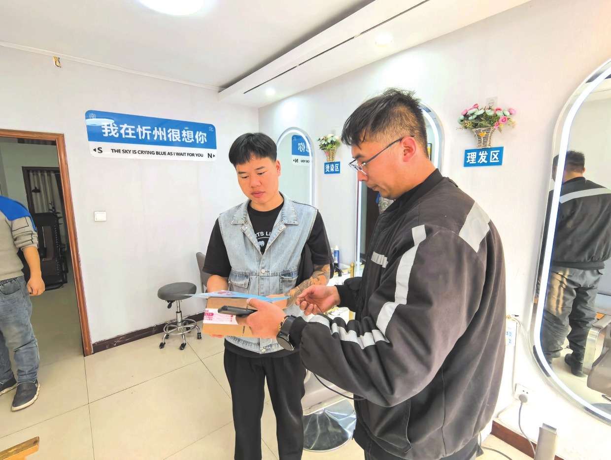 忻府區(qū)快遞小哥參與“順手捎帶”志愿服務(wù)活動(dòng)。