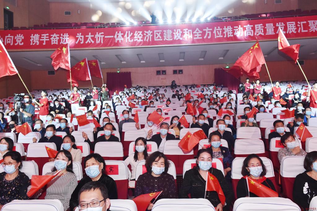 氣勢(shì)磅礴的合唱伴舞《領(lǐng)航》拉開(kāi)了演出的序幕。歌伴舞《忻州古城等你來(lái)》帶你走進(jìn)千年古城、走進(jìn)詩(shī)情畫意的“康養(yǎng)忻州”,領(lǐng)略晉北文化;音詩(shī)畫朗誦《奮進(jìn)新征程 建功新時(shí)代》表達(dá)了各民主黨派精誠(chéng)合作,為全方位推動(dòng)忻州高質(zhì)量發(fā)展凝聚強(qiáng)大政治力量的信心和決心;歌曲《太忻情》帶領(lǐng)大家聆聽(tīng)忻州全方位推動(dòng)高質(zhì)量發(fā)展的鏗鏘步伐,感受如火如荼、方興未艾的建設(shè)場(chǎng)面;《擼起袖子加油干》重溫了習(xí)近平總書記殷殷囑托;河曲二人臺(tái)《歡天喜地迎盛會(huì)》讓我們堅(jiān)信即將召開(kāi)的二十大必將帶領(lǐng)全國(guó)人民從勝利走向勝利;情景劇《在正道上行》再現(xiàn)了民營(yíng)企業(yè)家有大愛(ài)、有擔(dān)當(dāng)、無(wú)私奉獻(xiàn)助力鄉(xiāng)村振興和經(jīng)濟(jì)社會(huì)全面發(fā)展的情景,讓在場(chǎng)的每個(gè)人都深受感染;《騰飛吧,晉龍》《風(fēng)雪長(zhǎng)征》《山丹丹開(kāi)花紅艷艷》《親吻祖國(guó)》《紅旗飄飄》《為祖國(guó)干杯》……一首首歌曲昂揚(yáng)向上,一段段舞蹈剛勁有力,令人精神振奮、激情滿懷,唱響了朝氣蓬勃、同心追夢(mèng)的時(shí)代旋律,唱出了全市人民熱愛(ài)家鄉(xiāng)、建設(shè)家鄉(xiāng)的共同情懷,表達(dá)了忻州兒女奮進(jìn)新征程、建功新時(shí)代的壯志豪情。