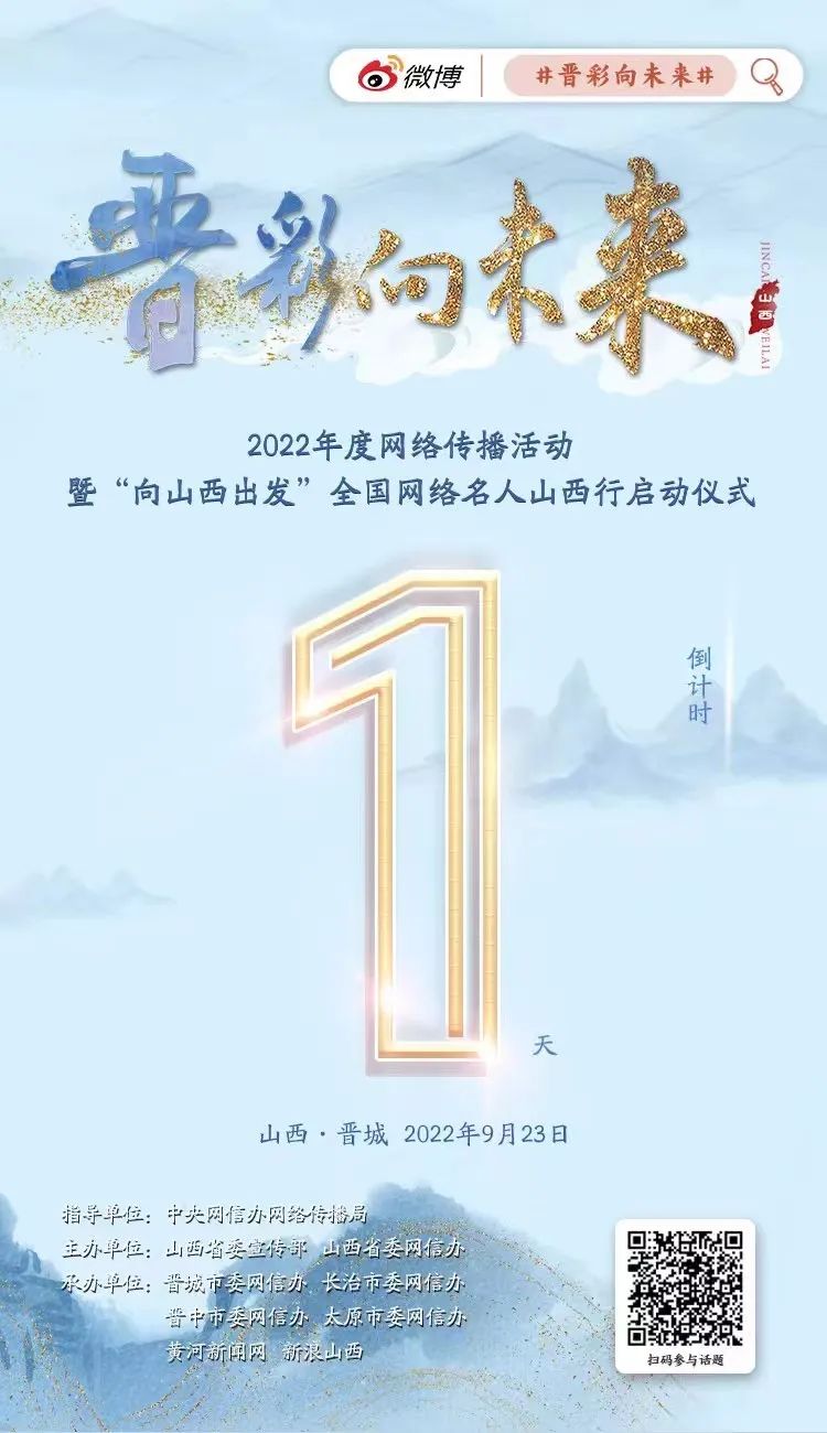 “晉彩向未來(lái)”年度網(wǎng)絡(luò)傳播活動(dòng),是“非凡十年?奮‘晉’未來(lái)”系列網(wǎng)絡(luò)主題宣傳活動(dòng)之一。活動(dòng)共分為短視頻征集活動(dòng)、全國(guó)網(wǎng)絡(luò)名人山西行、優(yōu)秀作品展播三階段推進(jìn),目前短視頻征集已在線上預(yù)熱開(kāi)啟?!皶x彩向未來(lái)”2022年度網(wǎng)絡(luò)傳播活動(dòng)暨“向山西出發(fā)”全國(guó)網(wǎng)絡(luò)名人山西行活動(dòng)將于9月23日正式啟動(dòng)。