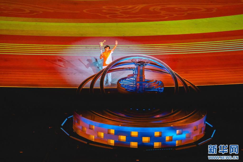 ??蘇翊鳴點燃主火炬。新華網(wǎng) 發(fā)(馬夢迪 攝)