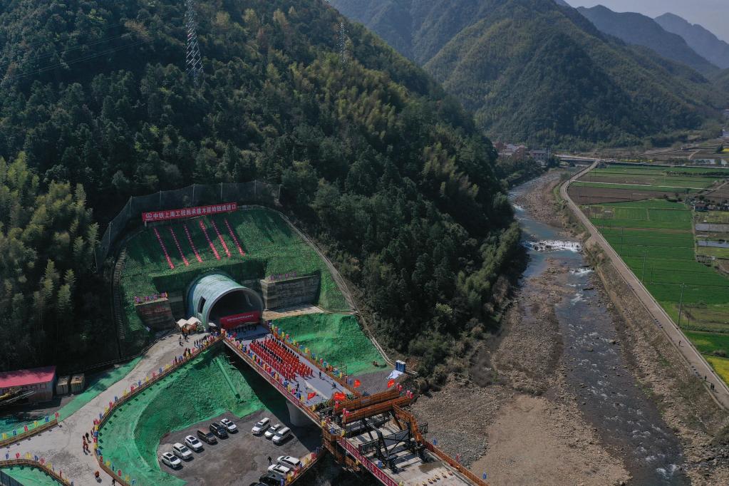 3月26日,杭溫鐵路二期項(xiàng)目最長隧道——木匪嶺隧道順利貫通。新華社記者黃宗治 攝