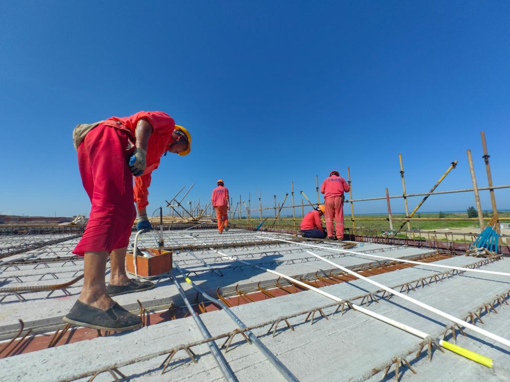備戰(zhàn)全島封關(guān),相關(guān)硬件設(shè)施建設(shè)不能落后。在洋浦國際集裝箱碼頭附近,洋浦港封關(guān)運作項目建設(shè)現(xiàn)場一片繁忙,百余名工人頂著烈日或扎鋼筋,或拌水泥,或裝樓板,個個汗流浹背?!?月要完工,助力海南自貿(mào)港到今年底具備封關(guān)運作硬件條件。”項目負責(zé)人李東冬說。