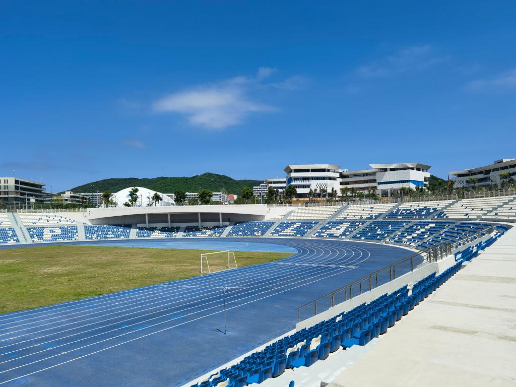 6月27日在海南陵水拍攝的國際教育創(chuàng)新試驗(yàn)區(qū)園區(qū)內(nèi)的運(yùn)動(dòng)場。新華社記者 劉勇貞 攝