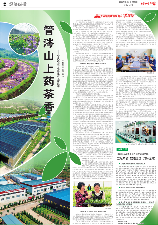 寧武縣依托自然資源稟賦、農(nóng)耕文化積淀和產(chǎn)業(yè)基礎優(yōu)勢,堅持政府扶持、企業(yè)主導、市場運作、群眾受益的原則,以“一軸四鎮(zhèn)十村”為承載主體,產(chǎn)銷緊密銜接,三產(chǎn)深度融合,縱向延鏈和橫向成群并舉,藥茶藥材和艾草山珍互促,使藥茶產(chǎn)業(yè)成為高質(zhì)量發(fā)展的新名片和農(nóng)業(yè)轉(zhuǎn)型的新引擎。