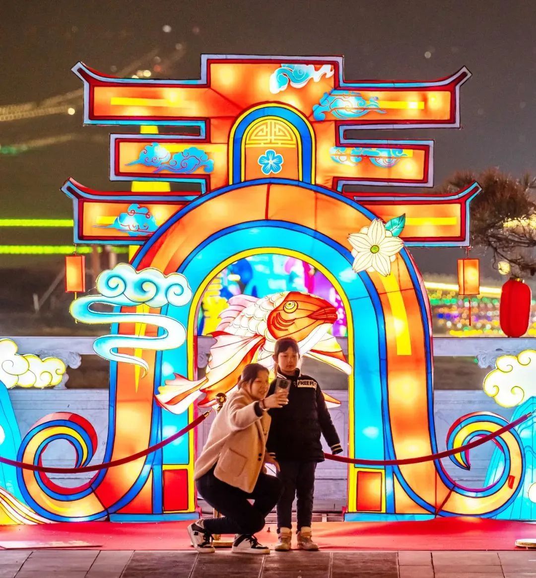 在晉城,陽(yáng)城縣各廣場(chǎng)、公園、街道處處張燈結(jié)彩,人們?cè)跐鉂饽晡吨斜M情游玩,樂(lè)享春節(jié)假期。