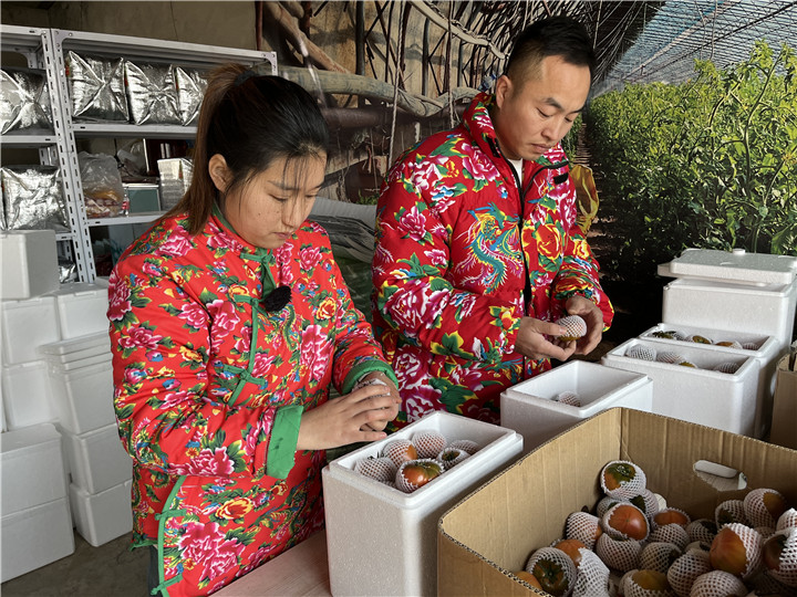 現(xiàn)在正值盤錦堿地柿子集中上市時期,王海濤和張爽每天都忙得團團轉(zhuǎn)?!敖衲暧唵瘟勘热ツ昝黠@增加不少,上升到每天200單左右?!睆埶f。