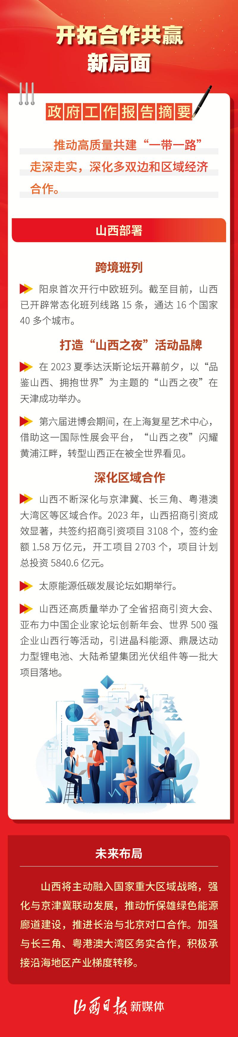 今年政府工作報(bào)告提出,擴(kuò)大高水平對(duì)外開(kāi)放,促進(jìn)互利共贏(yíng)。這為山西打造內(nèi)陸地區(qū)對(duì)外開(kāi)放新高地進(jìn)一步明確了方向。