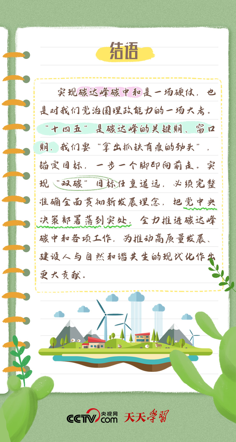 天天學(xué)習(xí)今年全國兩會(huì),習(xí)近平總書記在政協(xié)聯(lián)組會(huì)上,對(duì)“雙碳”工作作出最新部署??倳洀?qiáng)調(diào):“全面準(zhǔn)確落實(shí)精準(zhǔn)治污、科學(xué)治污、依法治污方針,推動(dòng)經(jīng)濟(jì)社會(huì)發(fā)展綠色化、低碳化,加強(qiáng)資源節(jié)約集約循環(huán)利用,拓展生態(tài)產(chǎn)品價(jià)值實(shí)現(xiàn)路徑,積極穩(wěn)妥推進(jìn)碳達(dá)峰碳中和,為高質(zhì)量發(fā)展注入新動(dòng)能、塑造新優(yōu)勢(shì)?!?/p>