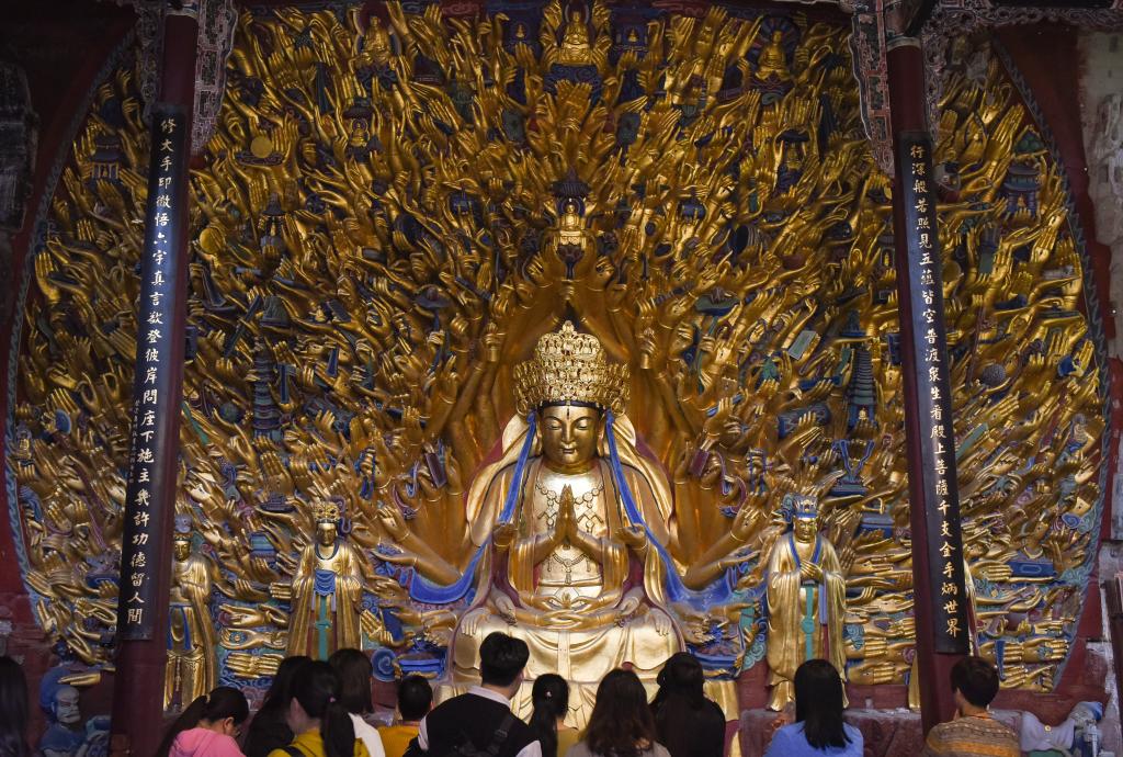 1952年,大足石刻文物保護(hù)機(jī)構(gòu)成立,開始系統(tǒng)科學(xué)保護(hù)大足石刻。當(dāng)年,北山石刻保護(hù)長廊啟動(dòng)建設(shè),北山石刻上方加蓋了擋雨的頂棚;1961年,北山、寶頂山摩崖造像成為第一批全國重點(diǎn)文物保護(hù)單位;1999年,大足石刻被列入《世界遺產(chǎn)名錄》;2015年,全國石質(zhì)文物保護(hù)一號(hào)工程——大足石刻千手觀音造像搶救性保護(hù)工程竣工;2019年,《大足石刻全集》出版,填補(bǔ)了國內(nèi)石窟寺編寫出版大型考古報(bào)告的空白……