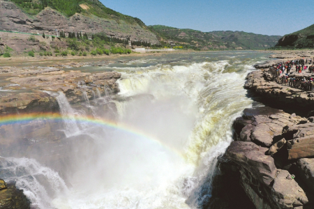洶涌奔流的黃河水跌入龍槽,白浪翻滾,聲若雷鳴。一進入黃河壺口瀑布旅游區(qū),來自河北的游客王鑫就被“清流飛瀑”奇特景觀吸引?!疤鸷沉?!奔騰向前百折不回的黃河,讓人頓生強烈的民族自豪感?!彼B連贊嘆。
