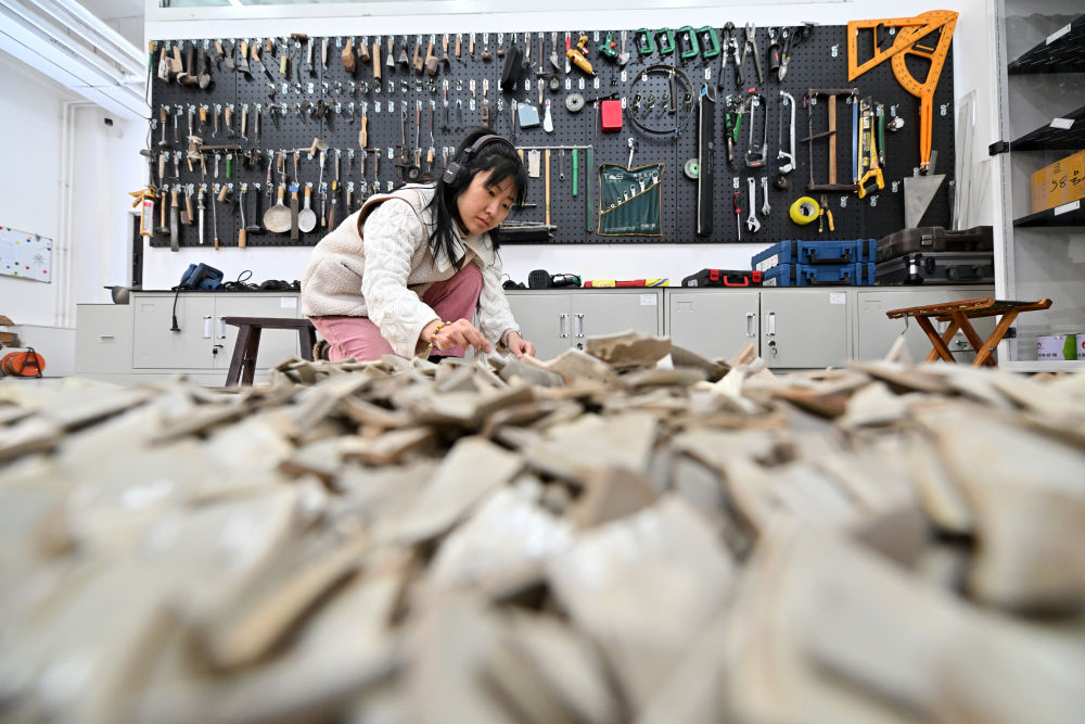 在云岡研究院可移動文物修復(fù)室,工作人員高嘉珩在進(jìn)行瓷器修復(fù)(2024年2月26日攝)。