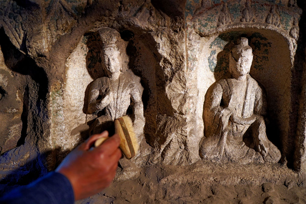 山西大同云岡石窟的佛像(2021年5月9日攝)。
