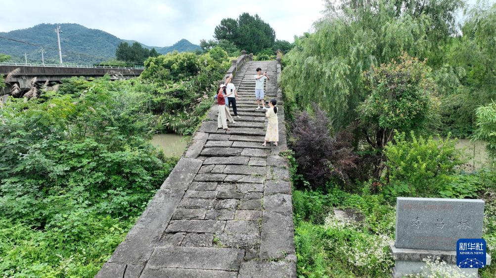 6月26日,村民在德清縣新安鎮(zhèn)舍北村萬善橋上散步。(新華社發(fā) 謝尚國 攝)