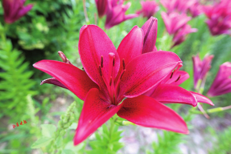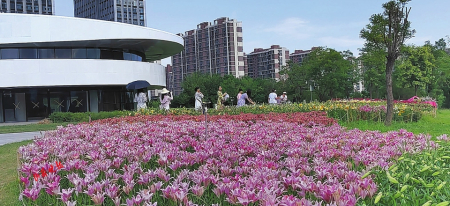 百合花種類繁多,形態(tài)各異。純凈高雅的白色、熱情嫵媚的紅色、明麗澄澈的橙黃、浪漫俏皮的粉紅、雍容華貴的紫色,形似漏斗,又如喇叭,或向上開花,張揚外翻、極端華麗,或含露低垂,矜持含蓄、超凡脫俗?;ㄩg蜂蝶飛舞,暗香浮動,游人三五成群,在花叢合影拍照,游玩嬉戲,好不愜意。市民王女士對這里贊賞有加:“看到這五顏六色的百合花,我的心情像盛開的花一樣,特別美!這里每季有每季的花開,每次來都有不一樣的驚喜和精彩?!?/p>