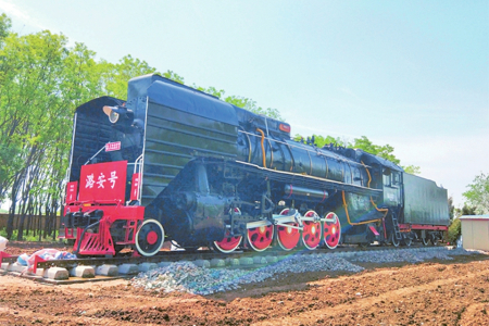 如今,大東溝成了煤礦生產(chǎn)設(shè)備的“露天博物館”,陳列著井下使用過的綜采支架、掘進(jìn)機(jī)、齒軌車、風(fēng)機(jī)、高壓開關(guān)、移動變電站、礦用潛水泵等40余種、近300件設(shè)備,為中國煤礦不同歷史發(fā)展階段保留了珍貴標(biāo)本。其中,有兩處展品更為引人注目:一是一臺時速80公里、牽引力324千牛的前進(jìn)型蒸汽機(jī)車,1975年由大同機(jī)車廠生產(chǎn),1994年由潞安集團(tuán)統(tǒng)一安排承擔(dān)石圪節(jié)煤礦和兄弟礦井的煤炭外運(yùn)及漳澤電廠的煤炭直送任務(wù),是潞安集團(tuán)首批鐵路運(yùn)輸牽引機(jī)車,直到2007年機(jī)車轉(zhuǎn)型升級后停用。如今,這臺蒸汽機(jī)車已經(jīng)成為一代人的記憶,也是不少人打卡的網(wǎng)紅地標(biāo)。還有一處是給人留下深刻印象的軌道墻。兩道長6米的水泥墻,墻體里鑲嵌著從石圪節(jié)井下運(yùn)上來的標(biāo)有不同年代的道軌,如產(chǎn)于1902年的德國道軌、產(chǎn)于1905年的比利時道軌、產(chǎn)于1915年的由漢陽鐵廠制造的道軌等。這些標(biāo)有生產(chǎn)年代的道軌,當(dāng)年在井下作為支撐物或巷道頂棚使用,如今成為石圪節(jié)煤礦發(fā)展歷程的見證,默默地向人們訴說石圪節(jié)開采歷史的久遠(yuǎn)。