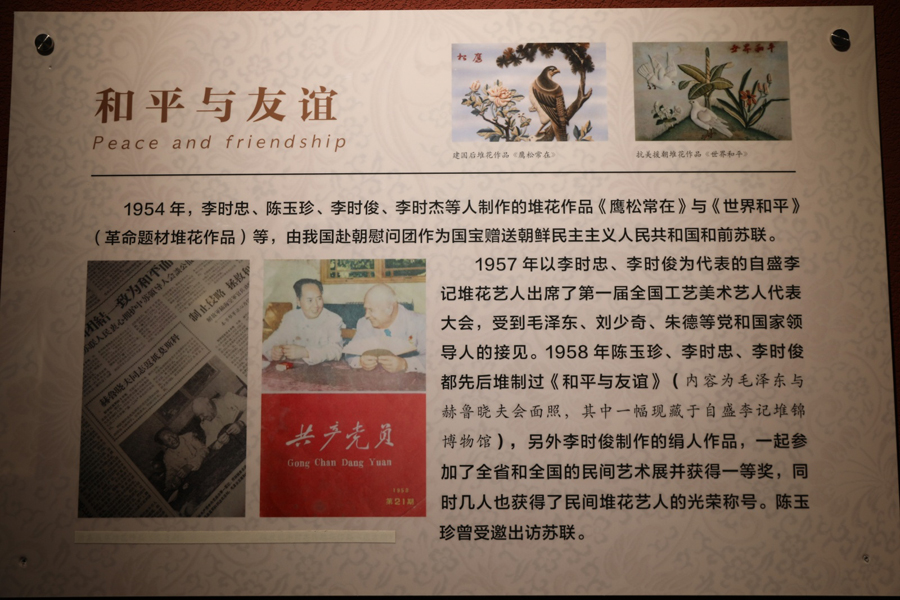 然而,歷史的波瀾并未停止。中華人民共和國成立后,堆花藝術(shù)經(jīng)歷了從繁榮到衰落,再到復(fù)興的曲折歷程。在黨和政府的關(guān)懷下,老一輩堆花藝人積極響應(yīng)號(hào)召,成立堆花小組,將堆花藝術(shù)服務(wù)于國家建設(shè)和人民生活??姑涝陂g,堆花作品作為國寶贈(zèng)予朝鮮,見證了中朝兩國人民的深厚友誼。