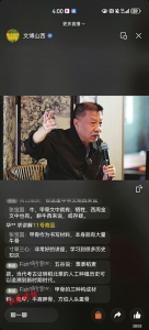 從山西古代壁畫隱藏的密碼、傳統(tǒng)壁畫艷麗制作工藝的挖掘研究,現(xiàn)場(chǎng)觀眾聽得津津有味、頻頻點(diǎn)頭,直播間網(wǎng)友更是踴躍留言、頻繁互動(dòng),網(wǎng)友@寸草三心留言:“非常好的講座,學(xué)習(xí)到很多歷史知識(shí)”;還有網(wǎng)友留言探討山西古代壁畫的重要價(jià)值。直播收尾前,如何更好地保護(hù)山西低等級(jí)壁畫?介子平老師表示,文物不分“高低”,每個(gè)人審美不一樣,無論是低等級(jí)別還是其他級(jí)別,山西古代壁畫都值得大家去保護(hù)、去珍藏、去解讀;史宏蕾教授也呼吁,大家一定要關(guān)注那些散落在鄉(xiāng)間田野里的低等級(jí)壁畫,低等級(jí)壁畫中也有極其重要的價(jià)值。