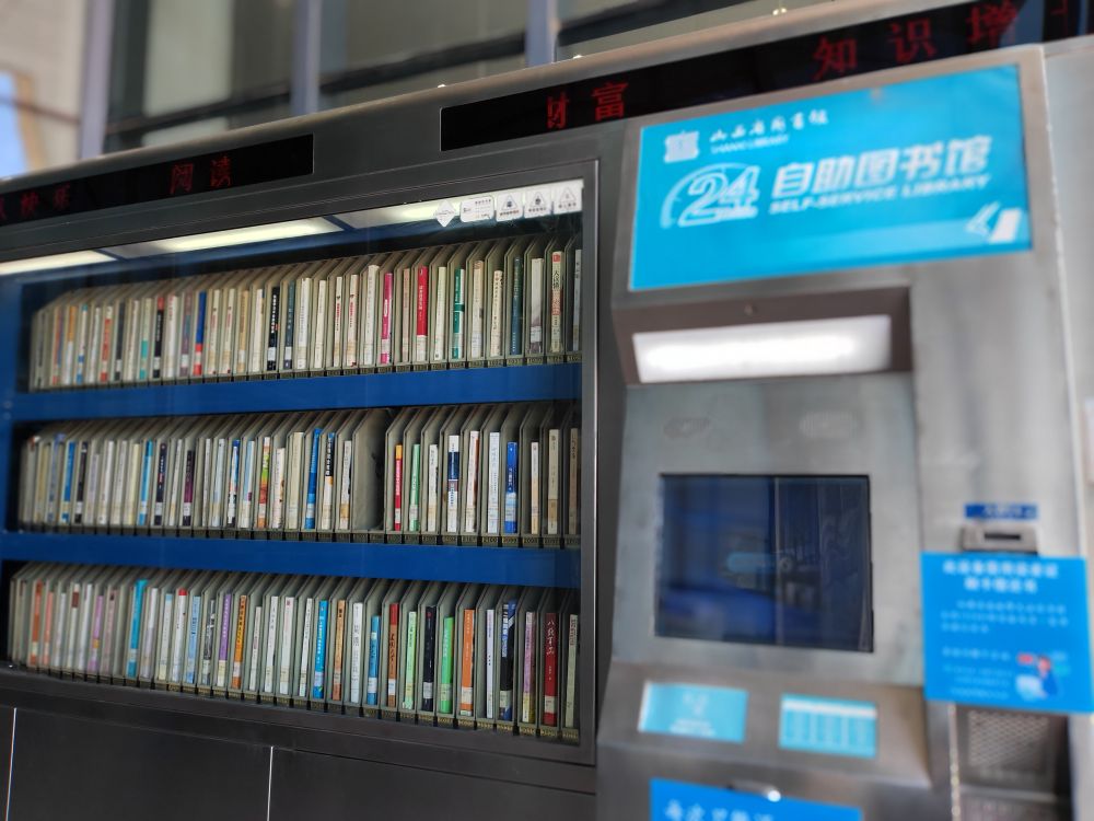這是4月22日拍攝的山西省圖書(shū)館門(mén)口的24小時(shí)自主借閱機(jī)。新華社記者 解園 攝