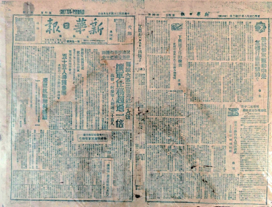 1945年9月7日,中共太岳區(qū)委機關(guān)報《新華日報》(太岳版)在第三版全文登出了日本投降的原文,還將一版、四版內(nèi)容用少見的藍色油墨印刷,以顯示其具有特殊的紀(jì)念意義。王海勇藏