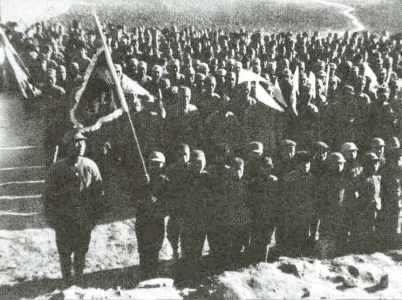 八路軍某部和群眾一起采集樹葉充饑,堅(jiān)持抗戰(zhàn)。