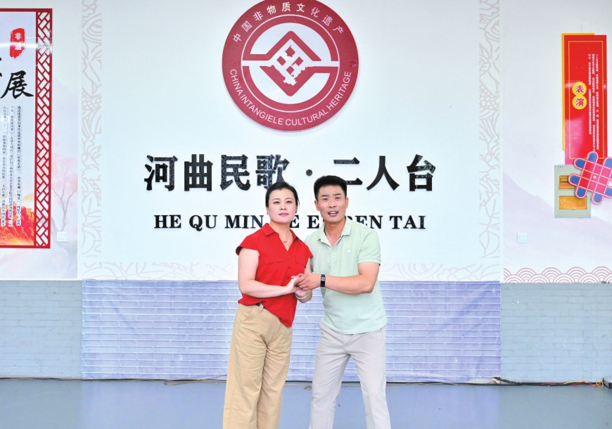 走進河曲縣白樸公園,一段清亮婉轉(zhuǎn)的唱腔便隨風(fēng)入耳——河曲縣民歌二人臺藝術(shù)團演員鄔光正和同事們?nèi)橥度?,打磨大型非遺音樂劇《大河長歌》。他額角滲著細(xì)密的汗珠,當(dāng)唱到“好兒女今日唱長歌,勝過了前輩了不得”時,突然停了下來,對搭檔說:“再來一遍,剛才那口氣沒頂滿?!边@份對細(xì)節(jié)的較真,藏著他對二人臺藝術(shù)最樸素也最深厚的敬畏。