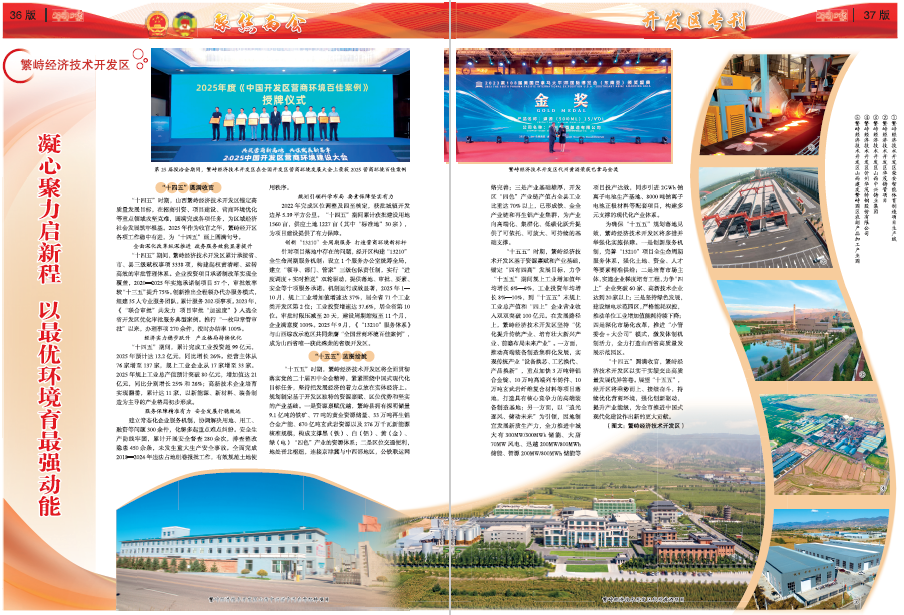 凝心聚力啟新程 以最優(yōu)環(huán)境育最強動能 “十四五”圓滿收官 “十四五”時期,山西繁峙經(jīng)濟技術(shù)開發(fā)區(qū)錨定高質(zhì)量發(fā)展目標(biāo),在招商引資、項目建設(shè)、營商環(huán)境優(yōu)化等重點領(lǐng)域攻堅克難,圓滿完成各項任務(wù),為區(qū)域經(jīng)濟社會發(fā)展筑牢根基。2025年作為收官之年,繁峙經(jīng)開區(qū)各項工作穩(wěn)中有進,為“十四五”畫上圓滿句號。 全面深化改革縱深推進政務(wù)服務(wù)效能顯著提升 “十四五”期間,繁峙經(jīng)濟技術(shù)開發(fā)區(qū)累計承接省、市、縣三級賦權(quán)事項3338項,構(gòu)建起權(quán)責(zé)清晰、運轉(zhuǎn)高效的審批管理體系。企業(yè)投資項目承諾制改革實現(xiàn)全覆蓋,2020—2025年實施承諾制項目57個,審批效率較“十三五”提升75%。創(chuàng)新推出全程領(lǐng)辦代辦服務(wù)模式,組建35人專業(yè)服務(wù)團隊,累計服務(wù)202項事項。2023年,《“聯(lián)合審批”共發(fā)力 項目審批“加速度”》入選全省開發(fā)區(qū)優(yōu)化審批服務(wù)典型案例。推行“一枚印章管審批”以來,辦理事項270余件,按時辦結(jié)率100%。 經(jīng)濟實力穩(wěn)步躍升產(chǎn)業(yè)格局持續(xù)優(yōu)化 “十四五”期間,累計完成工業(yè)投資超99億元,2025年預(yù)計達12.2億元,同比增長26%。經(jīng)營主體從76家增至137家,規(guī)上工業(yè)企業(yè)從17家增至33家。2025年規(guī)上工業(yè)總產(chǎn)值預(yù)計突破80億元,增加值達21億元,同比分別增長25%和26%;高新技術(shù)企業(yè)培育實現(xiàn)翻番,累計達11家,以新能源、新材料、裝備制造為主導(dǎo)的產(chǎn)業(yè)格局初步形成。 服務(wù)保障精準(zhǔn)有力安全發(fā)展行穩(wěn)致遠 建立常態(tài)化企業(yè)服務(wù)機制,協(xié)調(diào)解決用地、用工、融資等問題300余件,化解多起重點難點糾紛。安全生產(chǎn)防線牢固,累計開展安全督查280余次,排查整改隱患450余條,未發(fā)生重大生產(chǎn)安全事故。全面完成2018—2024年違法占地組卷報批工作,有效規(guī)范土地使用秩序。 規(guī)劃引領(lǐng)科學(xué)布局要素保障堅實有力 2022年完成區(qū)位調(diào)整及四至核定,獲批城鎮(zhèn)開發(fā)邊界5.39平方公里?!笆奈濉逼陂g累計獲批建設(shè)用地1560畝,供應(yīng)土地1227畝(其中“標(biāo)準(zhǔn)地”30宗),為項目建設(shè)提供了有力保障。 創(chuàng)新“13210”全周期服務(wù) 打造營商環(huán)境新標(biāo)桿 針對項目落地中存在的問題,經(jīng)開區(qū)構(gòu)建“13210”全生命周期服務(wù)機制:設(shè)立1個服務(wù)辦公室統(tǒng)籌全局,建立“領(lǐng)導(dǎo)、部門、管家”三級包保責(zé)任制,實行“進度調(diào)度+實時推送”雙輪驅(qū)動,提供落地、審批、要素、安全等十項服務(wù)承諾。機制運行成效顯著,2025年1—10月,規(guī)上工業(yè)增加值增速達37%,居全省71個工業(yè)類開發(fā)區(qū)第2位;工業(yè)投資增速達37.6%,居全省第10位。審批時限壓減至20天,建設(shè)周期縮短至11個月,企業(yè)滿意度100%。2025年9月,《“13210”服務(wù)體系》與山西綜改示范區(qū)共同榮膺“全國營商環(huán)境百佳案例”,成為山西省唯一獲此殊榮的省級開發(fā)區(qū)。 “十五五”藍圖繪就 “十五五”時期,繁峙經(jīng)濟技術(shù)開發(fā)區(qū)將全面貫徹落實黨的二十屆四中全會精神,緊緊圍繞中國式現(xiàn)代化目標(biāo)任務(wù),堅持把發(fā)展經(jīng)濟的著力點放在實體經(jīng)濟上。規(guī)劃制定基于開發(fā)區(qū)獨特的資源稟賦、區(qū)位優(yōu)勢和堅實的產(chǎn)業(yè)基礎(chǔ)。一是資源稟賦優(yōu)越,繁峙縣擁有探明儲量9.1億噸的鐵礦、77噸的黃金資源儲量、33萬噸再生鋁合金產(chǎn)能、670億噸玄武巖資源以及276萬千瓦新能源核準(zhǔn)規(guī)模,構(gòu)成支撐黑(鐵)、白(鋁)、黃(金)、綠(電)“四色”產(chǎn)業(yè)的資源體系;二是區(qū)位交通便利,地處晉北樞紐,連接京津冀與中西部地區(qū),公鐵聯(lián)運網(wǎng)絡(luò)完善;三是產(chǎn)業(yè)基礎(chǔ)雄厚,開發(fā)區(qū)“四色”產(chǎn)業(yè)鏈產(chǎn)值占全縣工業(yè)比重達70%以上,已形成鐵、金全產(chǎn)業(yè)鏈和再生鋁產(chǎn)業(yè)集群,為產(chǎn)業(yè)向高端化、集群化、低碳化躍升提供了可依托、可放大、可持續(xù)的基礎(chǔ)支撐。 “十五五”時期,繁峙經(jīng)濟技術(shù)開發(fā)區(qū)基于資源稟賦和產(chǎn)業(yè)基礎(chǔ),錨定“四有四高”發(fā)展目標(biāo),力爭“十五五”期間規(guī)上工業(yè)增加值年均增長6%—8%,工業(yè)投資年均增長8%—10%,到“十五五”末規(guī)上工業(yè)總產(chǎn)值和“四上”企業(yè)營業(yè)收入雙雙突破100億元。在發(fā)展路徑上,繁峙經(jīng)濟技術(shù)開發(fā)區(qū)堅持“優(yōu)化提升傳統(tǒng)產(chǎn)業(yè)、培育壯大新興產(chǎn)業(yè)、前瞻布局未來產(chǎn)業(yè)”。一方面,推動高端裝備制造集群化發(fā)展,實現(xiàn)傳統(tǒng)產(chǎn)業(yè)“設(shè)備換芯、工藝換代、產(chǎn)品換新”,重點加快3萬噸鋅鋁合金錠、10萬噸高端列車鑄件、10萬噸玄武巖纖維復(fù)合材料等項目落地,打造具有核心競爭力的高端裝備制造基地;另一方面,以“追光逐風(fēng)、儲動未來”為引領(lǐng),因地制宜發(fā)